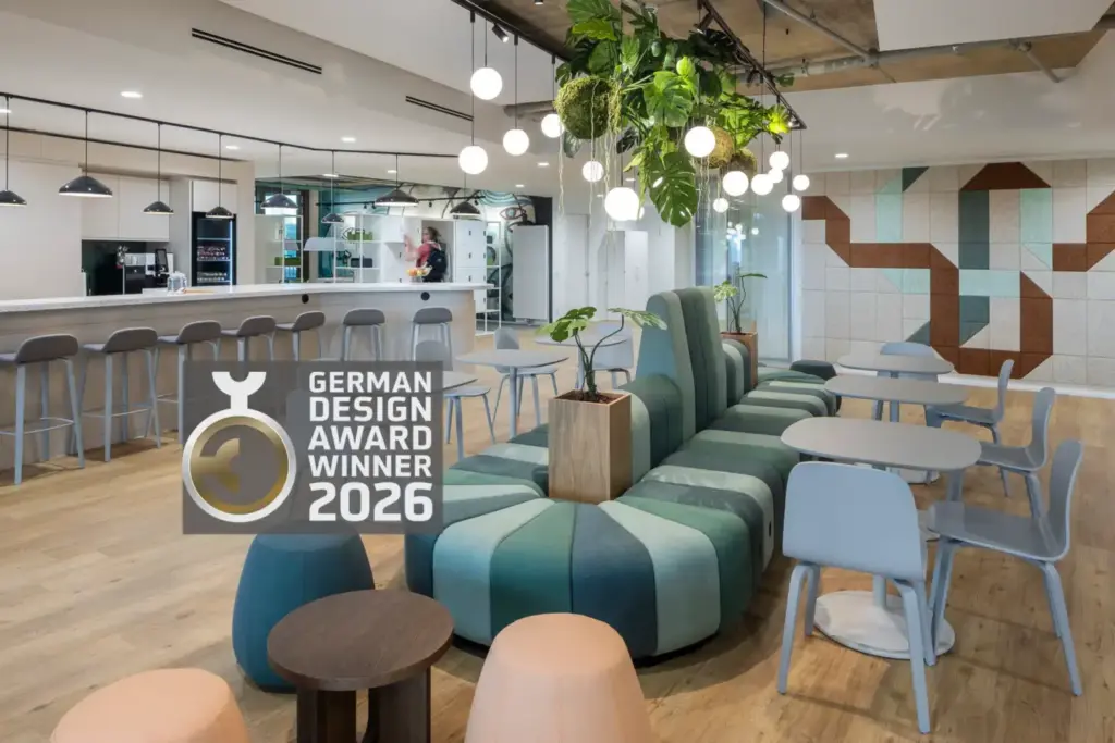 Design Award 2026 für die Arbeitslandschaft Vossloh Green Mobility in Düsseldorf.