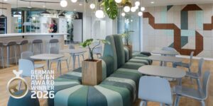Das neue Erscheinungsbild der AOK Rheinland / Hamburg spiegelt das Bild einer modernen Gesundheitskasse wider: offen, freundlich, nahbar, dazu nachhaltig und gesund. Diese Unternehmenswerte sind grundlegend für das neue Raumkonzept, welches von kplus konzept entwickelt wurde und für circa 60 Geschäftsstellen ausgerollt wird. Somit sind die AOK-Markenwerte für Versicherte und Besucher:innen im Raum erlebbar und die Standorte werden zu einem Marktplatz für alle Interessent:innen rund um das Thema Gesundheit. Mit unterschiedlichen Raumangeboten kann auf individuelle Bedürfnisse – z.B. auf Situationen, die Ruhe und Diskretion benötigen – kundenorientiert reagiert werden. Das Thema „New Work“ findet durch zunehmend digitale Abläufe und die technischen Voraussetzungen für mobiles Arbeiten stärker statt, wodurch eine Vorbildrolle für die Gesundheitsbranche eingenommen wird.
